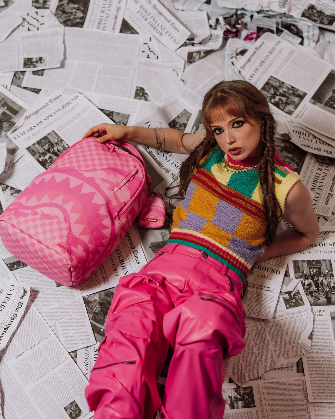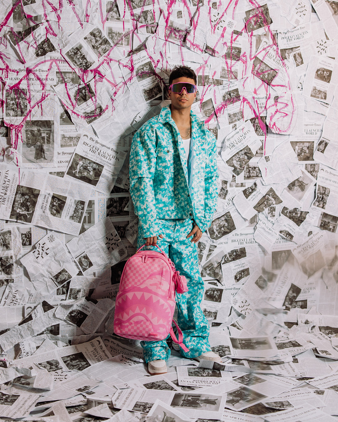 Dimensions: 18" x 6" x 11.5" • Front zipper pocket • Side pockets • Zippered Stash pocket • Separate velour sunglass compartment • Ergonomic mesh back padding • Adjustable Straps for custom sizing • Gold zippers with metal hardware • Metal "Sprayground Authentic" badge • Slide through back sleeve connects to carry-on luggage to free your hands