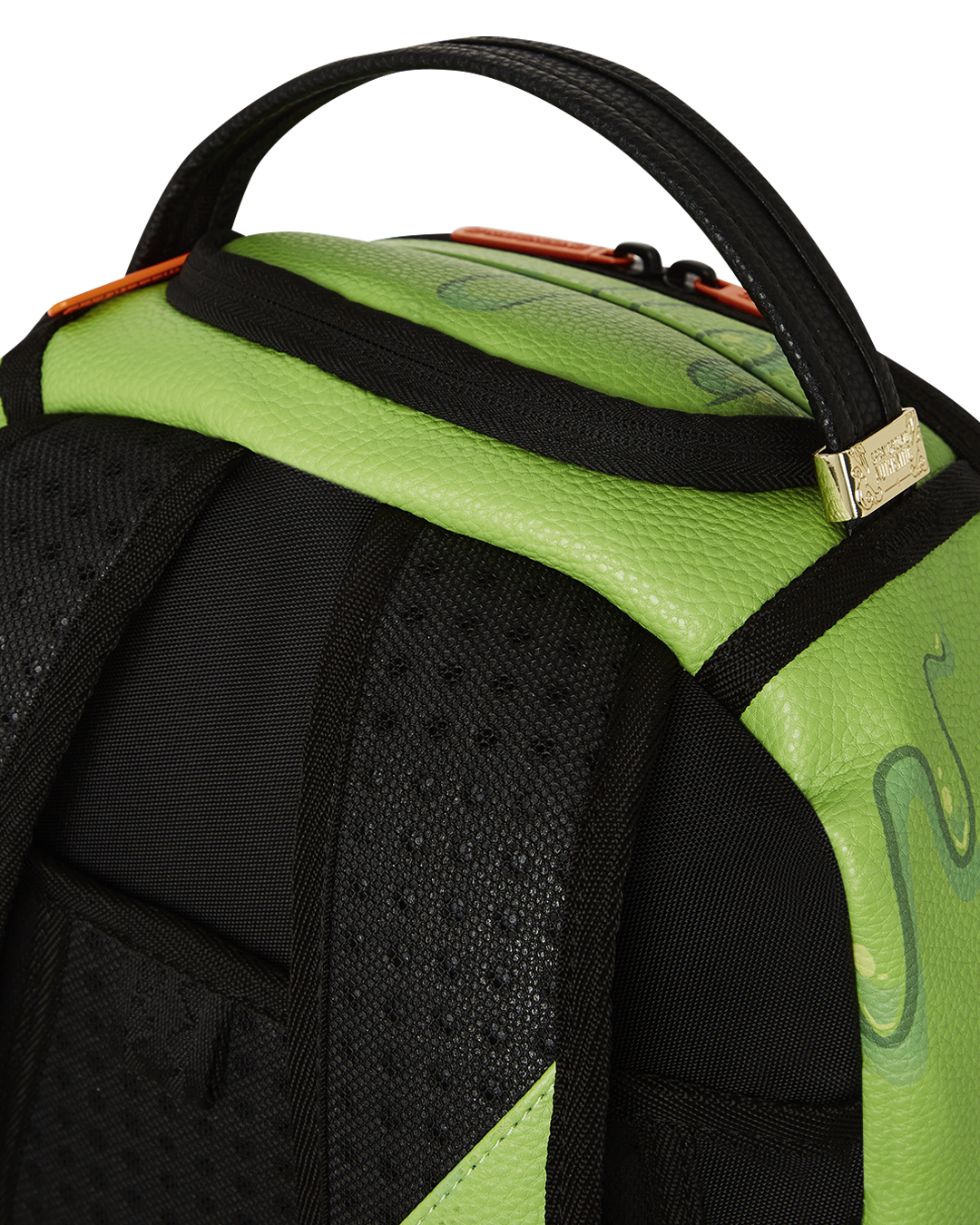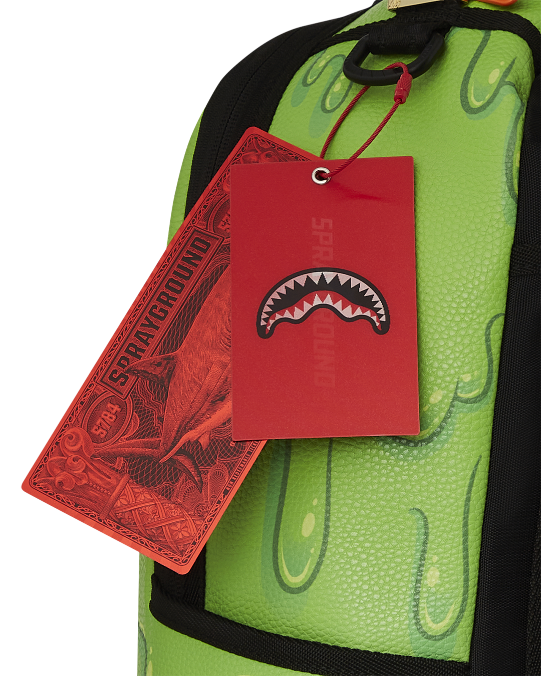Dimensions: 18" x 6" x 11.5" • Front zipper pocket • Side pockets • Zippered Stash pocket • Separate velour sunglass compartment • Ergonomic mesh back padding • Adjustable Straps for custom sizing • Gold zippers with metal hardware • Metal "Sprayground Authentic" badge • Slide through back sleeve connects to carry-on luggage to free your hands
