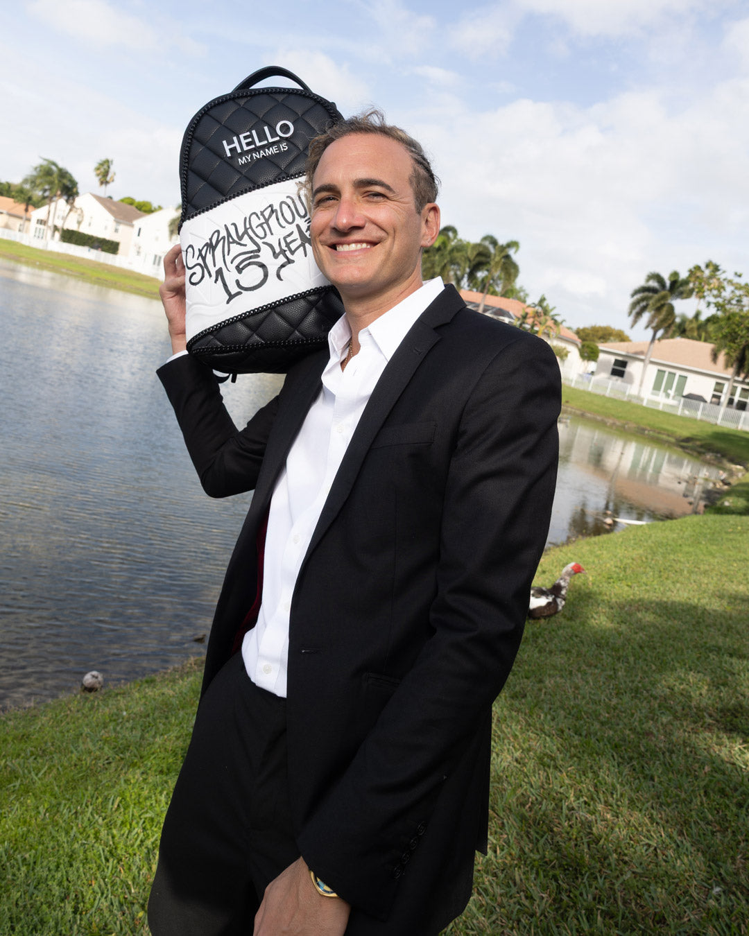 Dimensions: 18" x 6" x 11.5" • Front zipper pocket • Side pockets • Zippered Stash pocket • Separate velour sunglass compartment • Ergonomic mesh back padding • Adjustable Straps for custom sizing • Gold zippers with metal hardware • Metal "Sprayground Authentic" badge • Slide through back sleeve connects to carry-on luggage to free your hands
