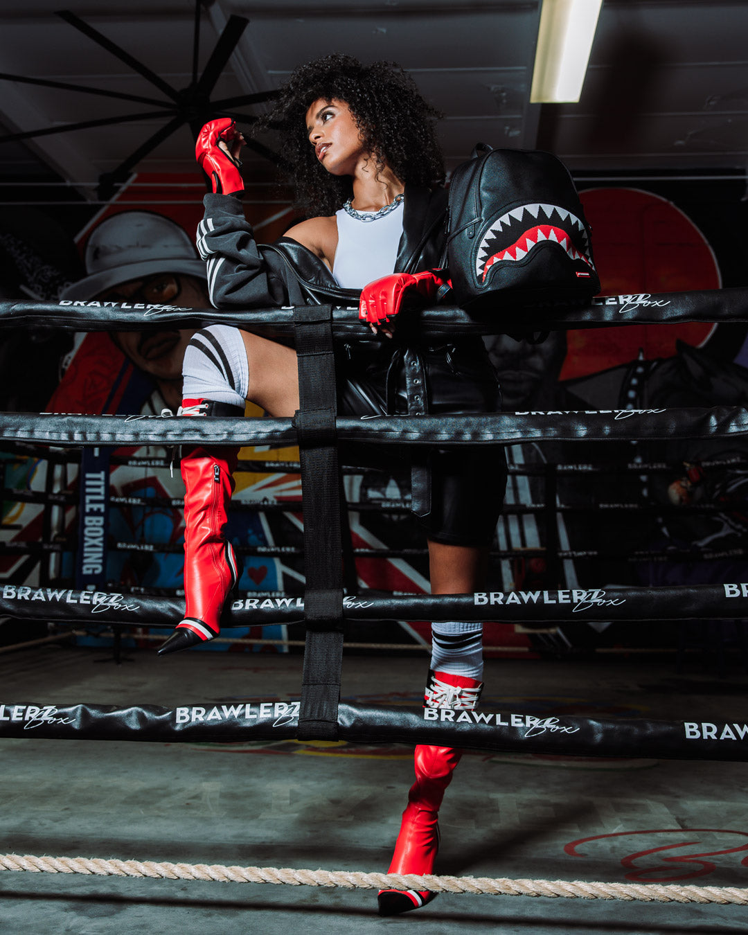Dimensions: 10" x 5" x 11.5" • Two large main zippered compartments • Side pockets • Zippered Stash pocket • Adjustable straps for custom sizing • Gold zippers with metal hardware