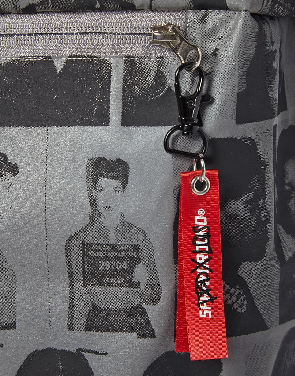 Exclusive DBD x LSQ collaboration from the Scammer Collection. A 3M reflective wind breaker with printed black and white mugshots of powerful women convicted for crimes throughout history.