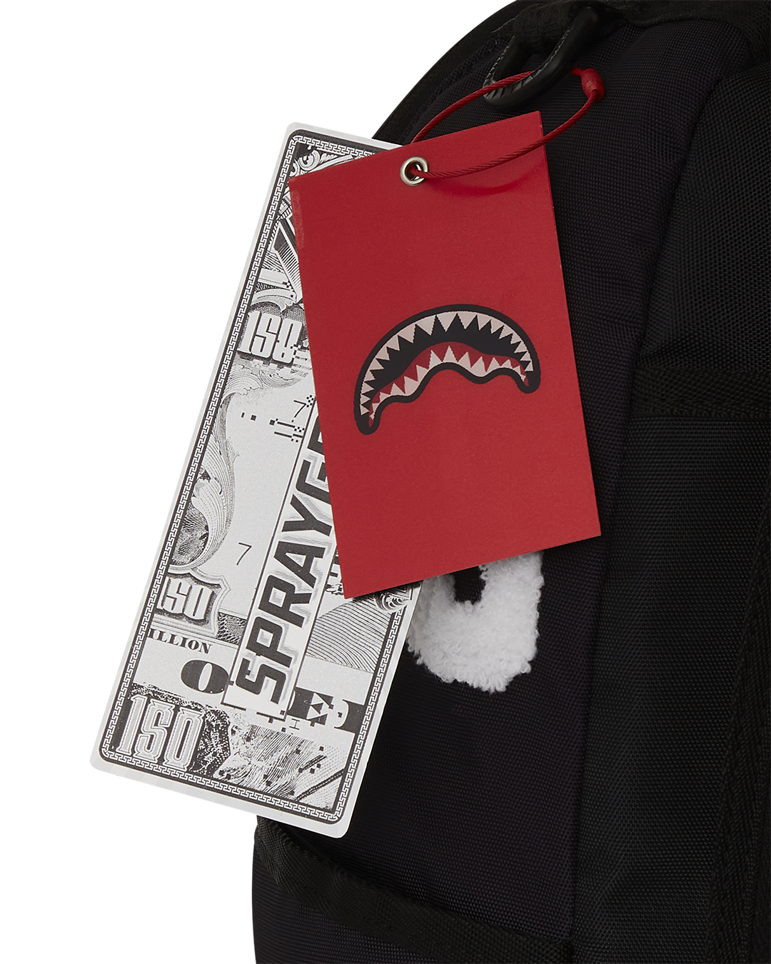 Dimensions: 18" x 6" x 11.5" • Front zipper pocket • Side pockets • Zippered Stash pocket • Separate velour sunglass compartment • Ergonomic mesh back padding • Adjustable Straps for custom sizing • Gold zippers with metal hardware • Metal "Sprayground Authentic" badge • Slide through back sleeve connects to carry-on luggage to free your hands