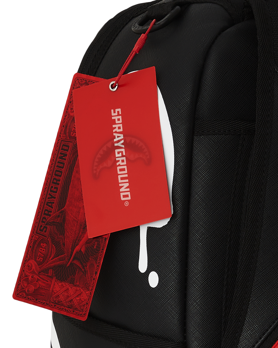 Dimensions: 18" x 6" x 11.5" • Front zipper pocket • Side pockets • Zippered Stash pocket • Separate velour sunglass compartment • Ergonomic mesh back padding • Adjustable Straps for custom sizing • Gold zippers with metal hardware • Metal "Sprayground Authentic" badge • Slide through back sleeve connects to carry-on luggage to free your hands