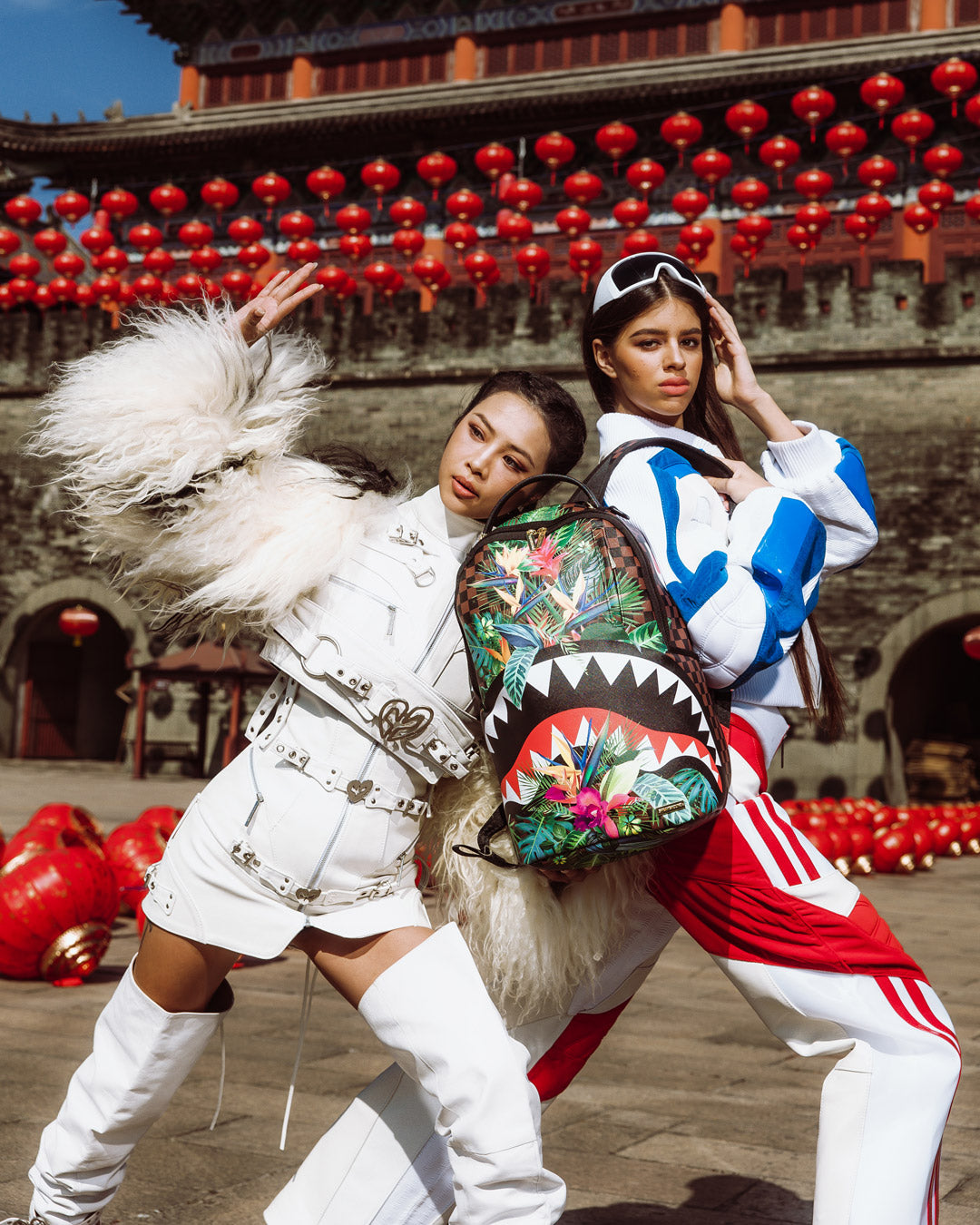 Dimensions: 18" x 6" x 11.5" • Front zipper pocket • Side pockets • Zippered Stash pocket • Separate velour sunglass compartment • Ergonomic mesh back padding • Adjustable Straps for custom sizing • Gold zippers with metal hardware • Metal "Sprayground Authentic" badge • Slide through back sleeve connects to carry-on luggage to free your hands