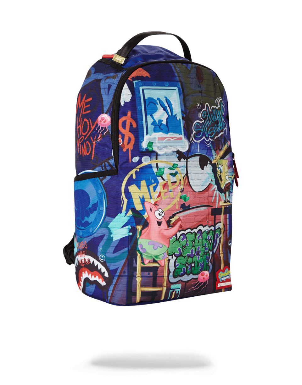 ExteriorDimensions: 18" x 6" x 11.5" • Front zipper pocket • Side pockets • Zippered Stash pocket • Ergonomic mesh back padding • Adjustable Straps for custom sizing • Nylon Zippers with Metal Hardware • Metal "Sprayground Authentic" badge • Slide through back sleeve connects to Carry on luggage to free your hands