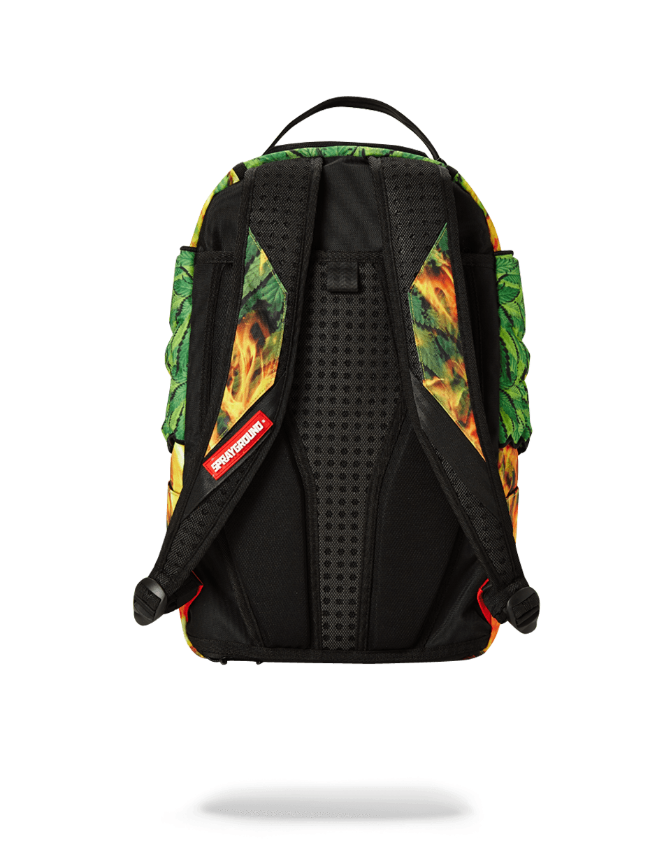 ExteriorDimensions: 18" x 6" x 11.5" ∙ Front zipper pocket ∙ Side pockets ∙ Zippered Stash pocket ∙ Ergonomic mesh back padding ∙ Adjustable Straps for custom sizing ∙ Nylon Zippers with Metal Hardware ∙ Metal "Sprayground Authentic" badge ∙ Slide through back sleeve connects to Carry on luggage to free your hands